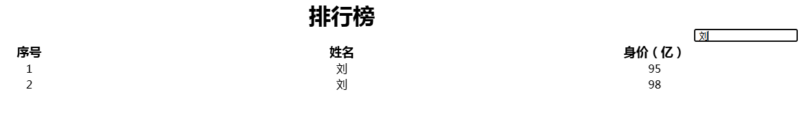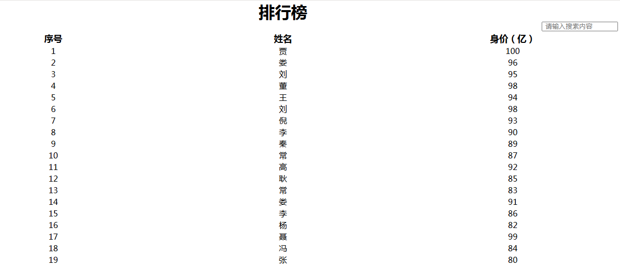 - 模糊搜索:用户可以在搜索框中输入关键词,排行榜会实时筛选出包含该关键词的数据,无论是姓名还是身价信息中包含关键词的记录都会被展示出来。