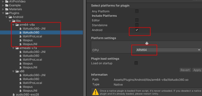 打包ARM64,插件里arm64里的几个库都设置arm64,平台选择安卓