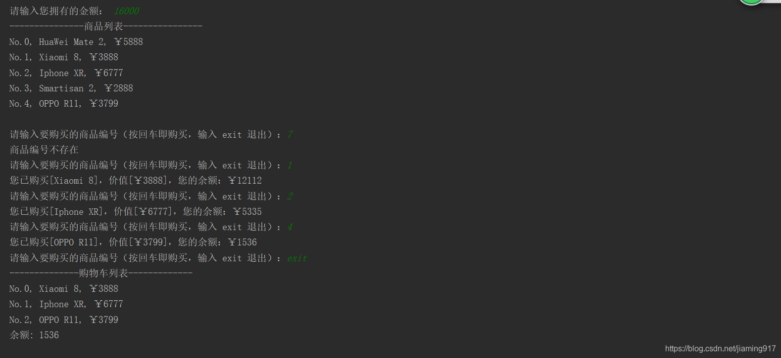 列表是Python中最基本的数据结构。列表中的每个元素都分配一个数字 - 它的位置,或索引,第一个索引是0,第二个索引是1,依此类推,列表可以用于存储很多维度的数据,一个应用就是用于购物车的实现,以下是我写的一个购物车的小程序,本例子中通过一个goods的;列表存储所有商品的名称和金额,通过操作goods列表来完成整个购物过程,另外还有还有运行的结果,与大家分享: