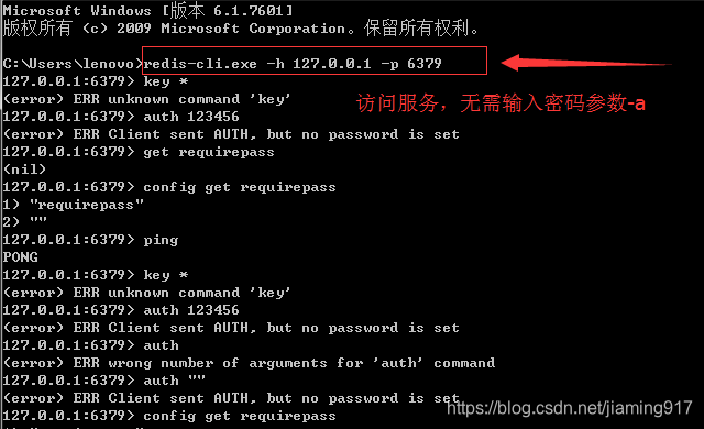 redis-cli.exe -h 127.0.0.1 -p 6379 //无需添加密码参数
