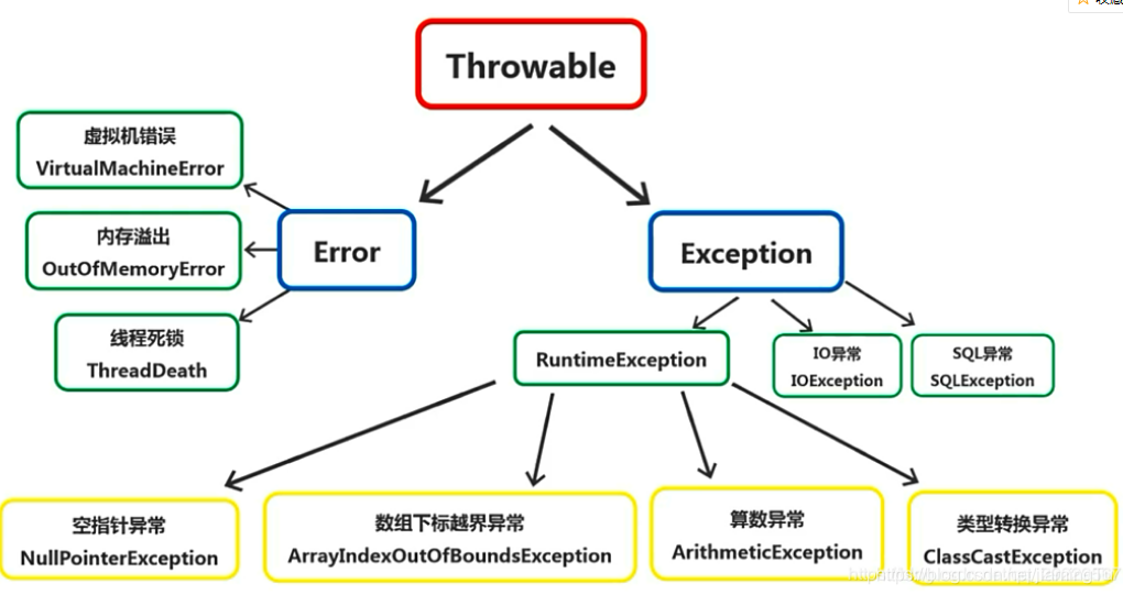 2)异常分类:编译异常(编译无法通过),运行时异常(可以不处理)