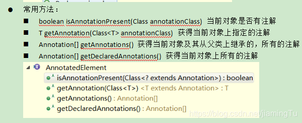 JDK提供java.lang.reflect.AnnotatedElement接口允许在运行时通过反射获得注解。