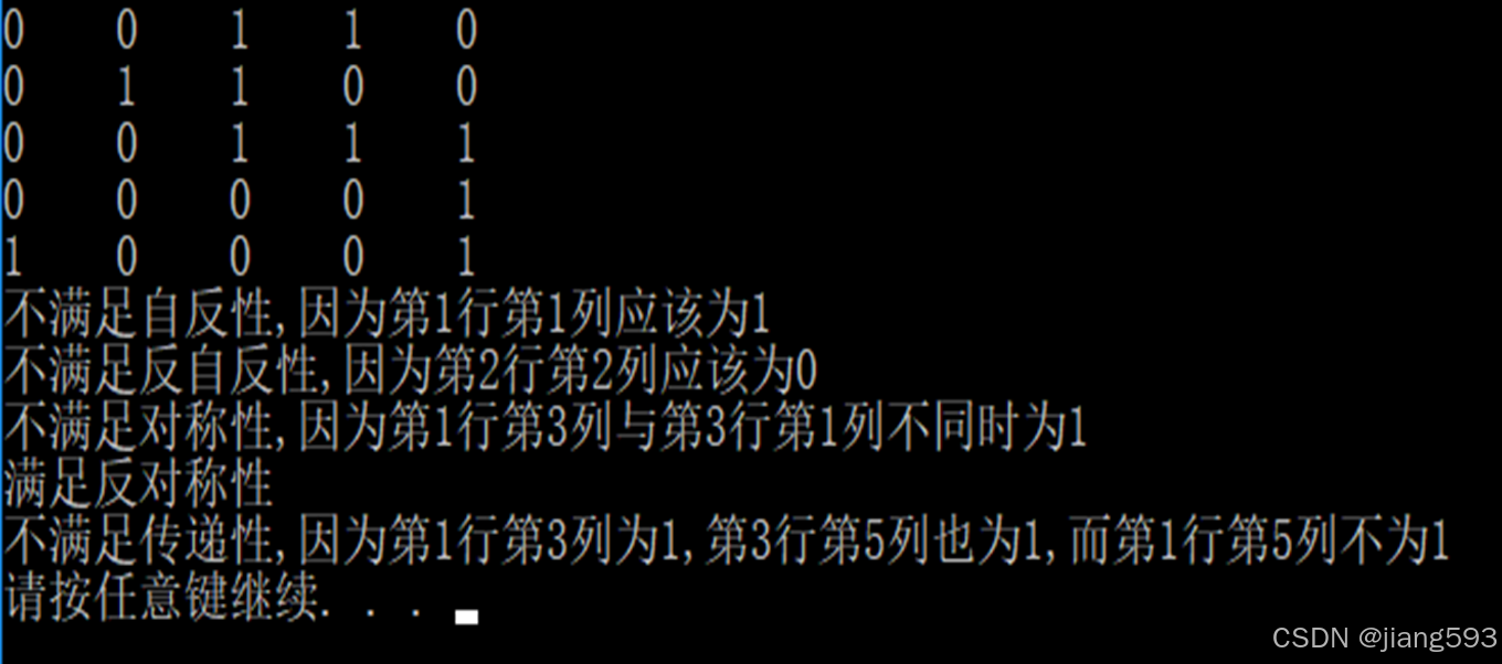 print(f"不满足反自反性,第{i+1}行{i+1}列不满足反自反性")