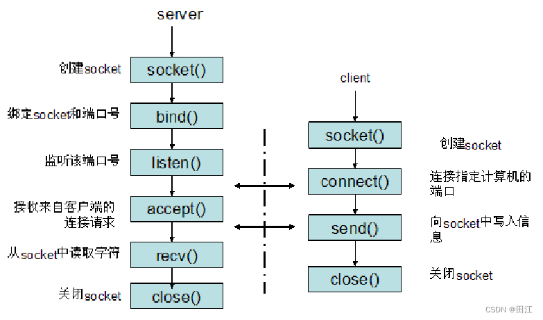 socket:插座;套接字 网络上的两个程序通过一个双向(全双工)的通信连接实现数据的交换,这个连接的一端称为一个socket。就像用座机打电话,给两个座机都插上电话线,就可以打电话,即语音信息的交流。