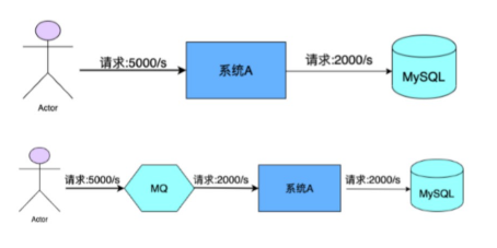 而异步调用则会解决这些问题,所以两层之间若要实现由同步到异步的转化,一般性做法就是,在这两层间添加一个MQ层。