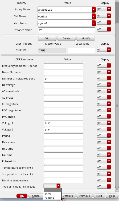 选中vpulse,按住q查看器件属性,如下: