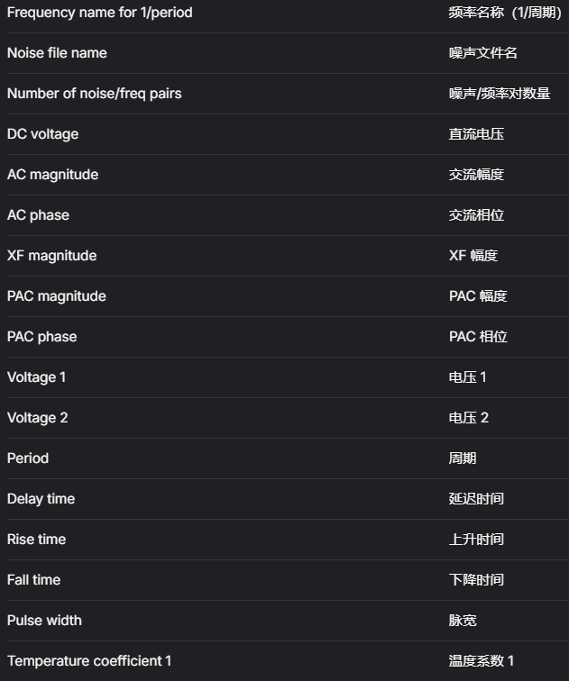 这些参数的中文如下