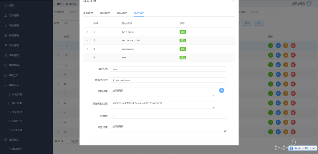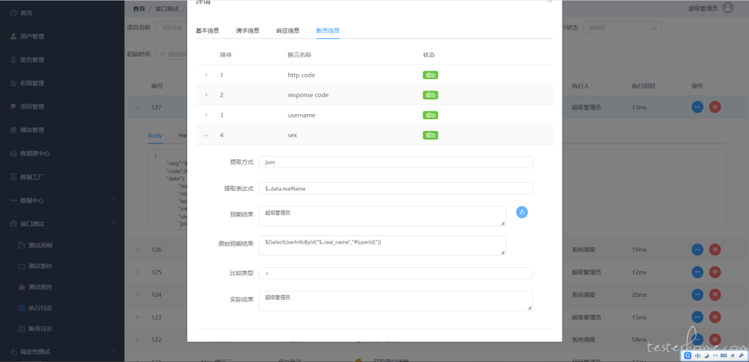 3. 断言检查接口返回值 username、realName 字段