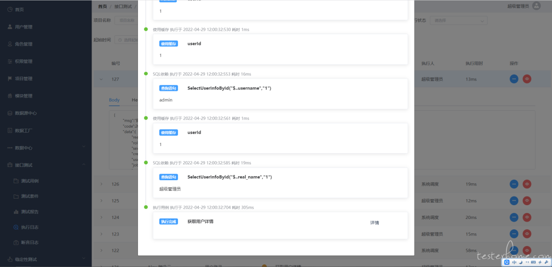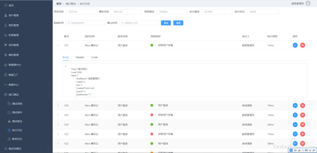 用例执行日志将记录用例的执行情况,断言信息,方便排错。同时,加入执行链路跟踪,使用例整体运行情况更加清晰。