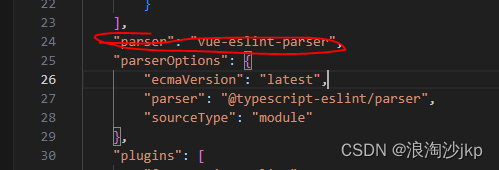ESLint 解析器配置,加上"parser": "vue-eslint-parser",