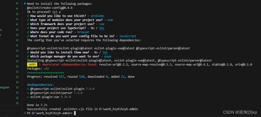 pnpm install eslint -D