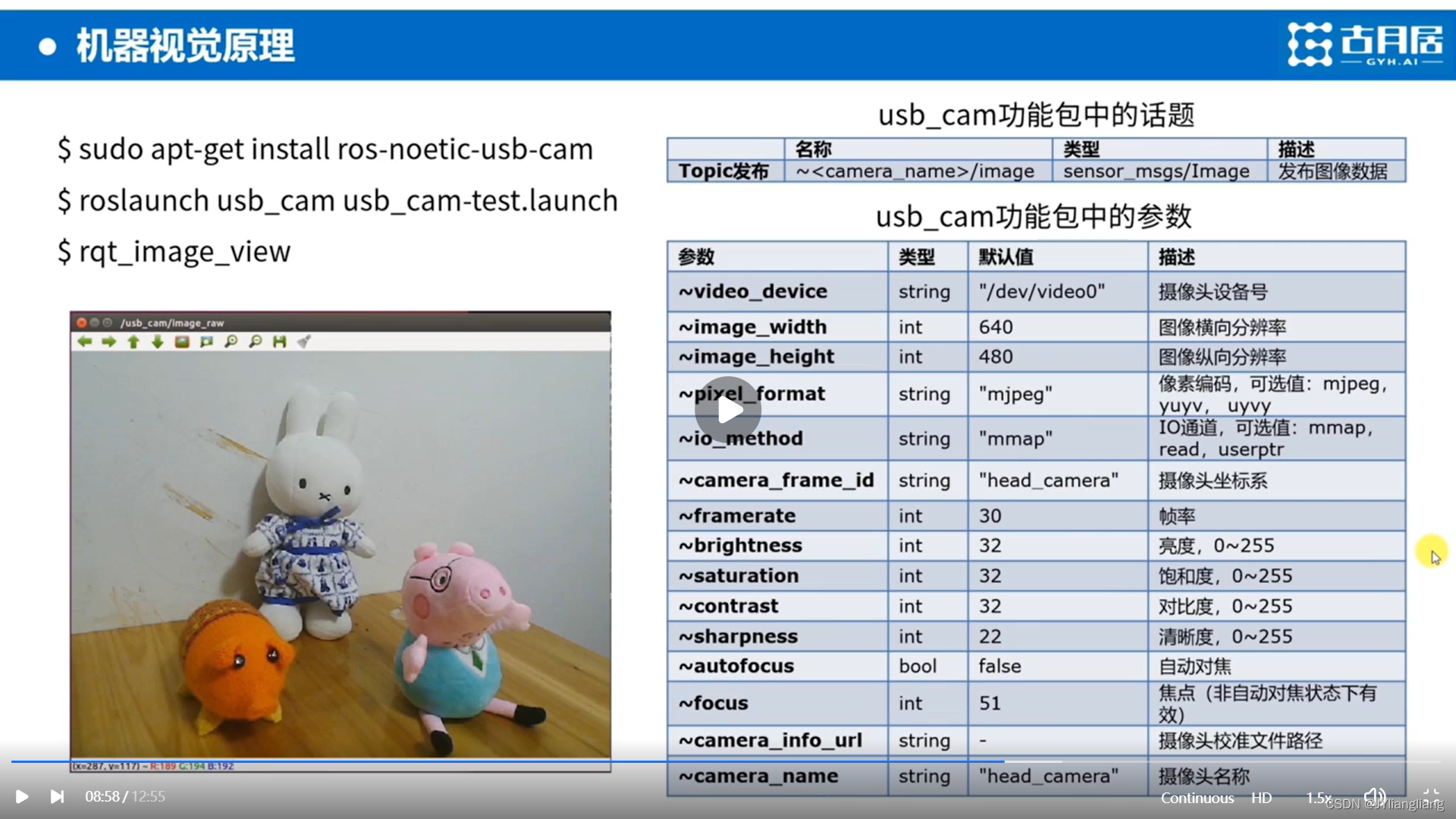 - roslaunch usb_cam usb_cam-test.launch
