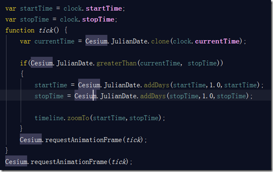 最后要强调的是tick方法,Cesium内部每一帧都会调用该方法,实现时间状态的更新和检测。