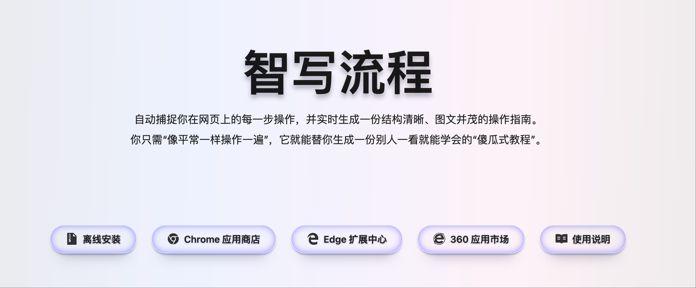 工具安装方式:Chrome应用商店、360、Edge浏览器扩展中心,搜索“智写流程”就可以一键安装。