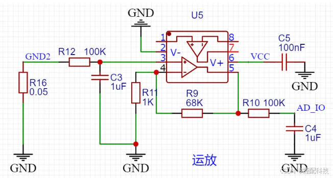 - GND2 和 R16 电阻:GND2 是负载的地端,通过 R16 电阻(要根据负载电流的大小选择功率大一点的 R16 哦)接公共地,这里会产生微小的电压差。