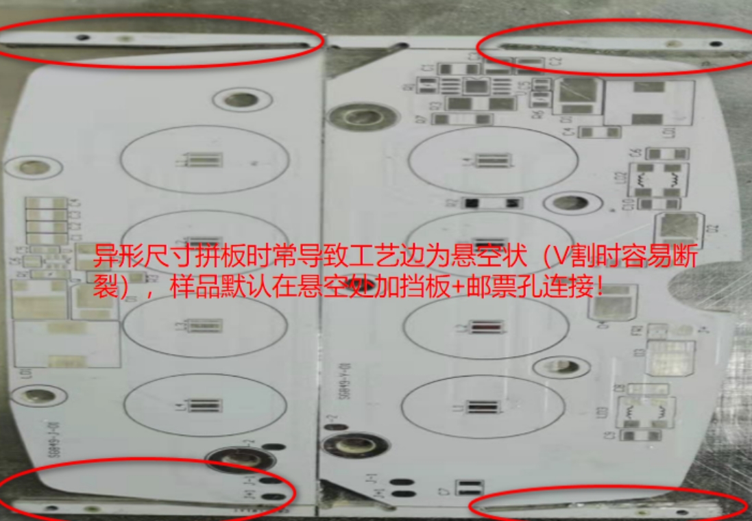 异形板/圆形板:强制使用邮票孔(避免应力集中)