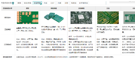 存放时间:存放超 1 个月选 ENIG、ENEPIG;1 个月内选 OSP、沉银(涂防氧化剂);