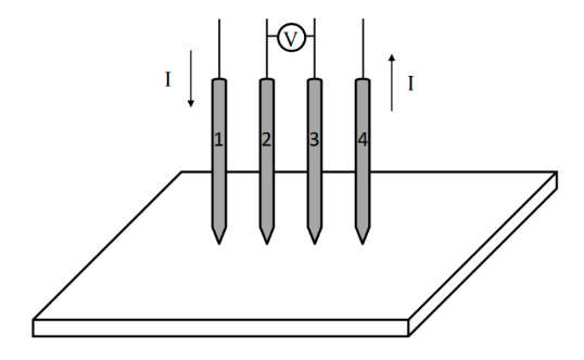 四探针法通过四个呈直线等间距排列的探针与样品表面接触,形成 “电流 - 电压” 测试回路,规避接触电阻干扰,实现对材料电阻特性的直接测量: