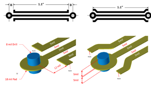 高频模拟信号(如射频信号)与高速数字信号(如 USB、PCIe)需做阻抗匹配:模拟射频线阻抗通常为 50Ω,数字差分线(如 USB4)阻抗通常为 100Ω,布线时需通过线宽、层间距控制阻抗(参考阻抗计算公式),避免信号反射。