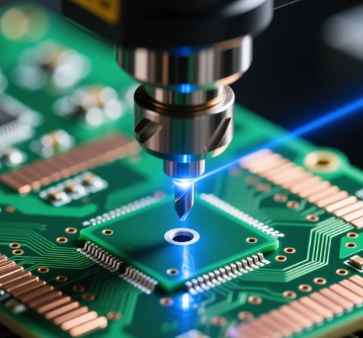 紫外激光的波长在 355nm 左右,属于紫外光,它的核心优势是冷加工—— 依靠光子能量直接打断板材的分子键,几乎没有热效应,加工后的孔壁光滑、无碳化,不需要额外处理。而且紫外激光的聚焦光斑极小,能加工出 0.01mm 级别的微孔,特别适合 HDI 板的微盲孔、柔性板的精细孔加工。不过紫外激光的设备成本较高,加工效率比 CO₂激光稍低,适合对精度要求极高的高端 PCB 产品。