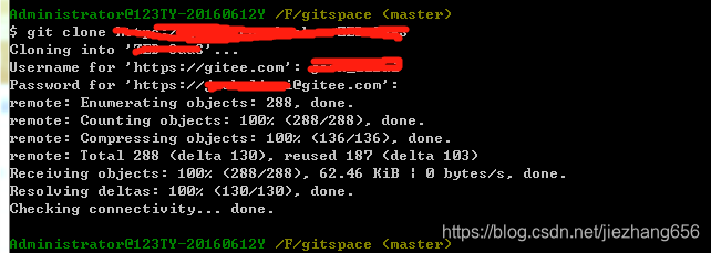 6、第一次从码云上下载程序,进行以下操作,git clone 项目地址: