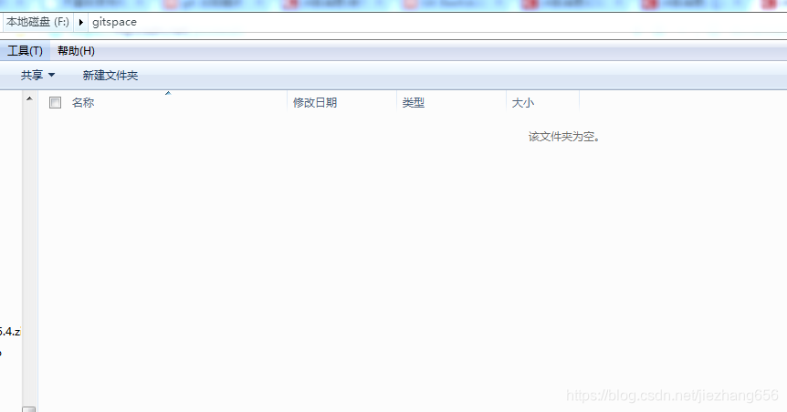 2、新建一个目录,存放下载下来的项目,我在F盘新建了一个“gitspace”文件夹,用来存放下载下来的项目