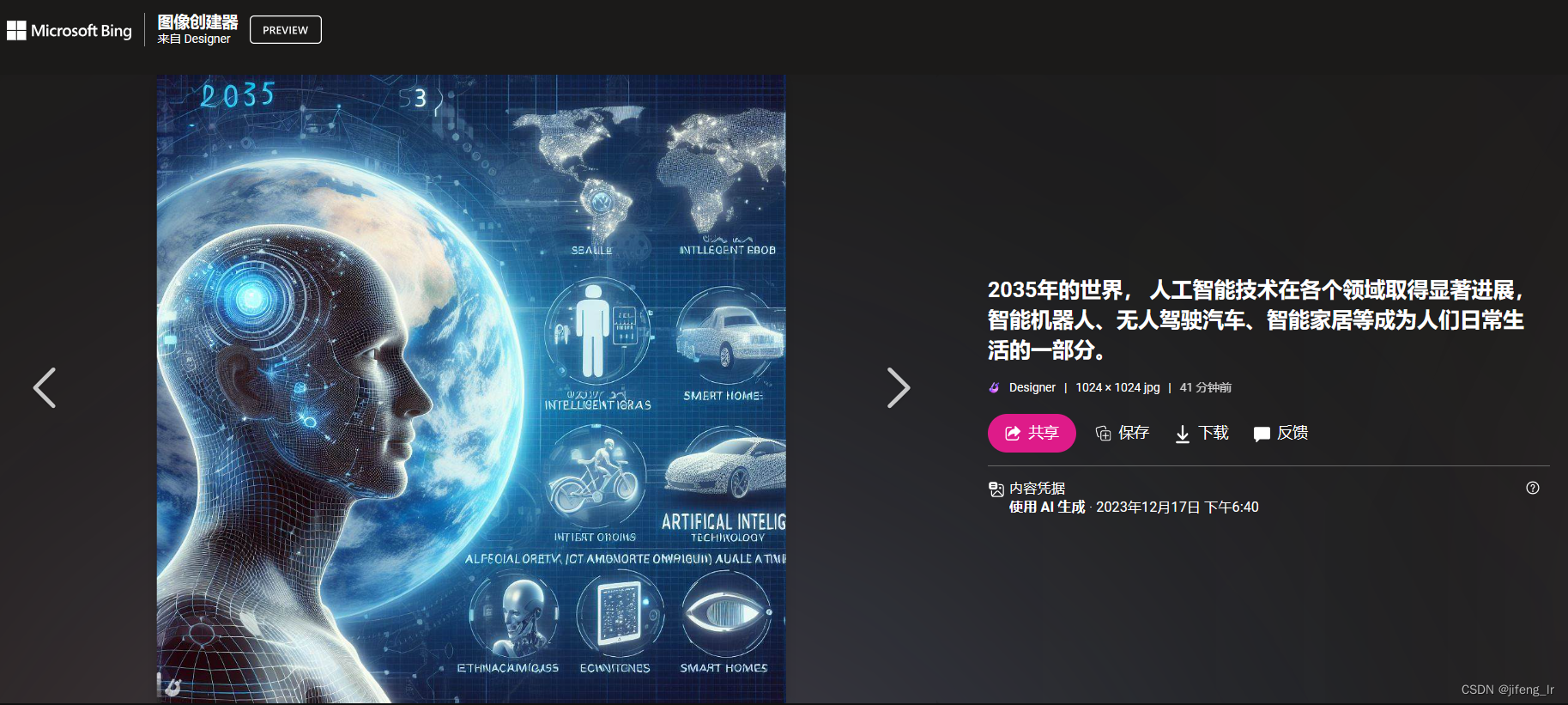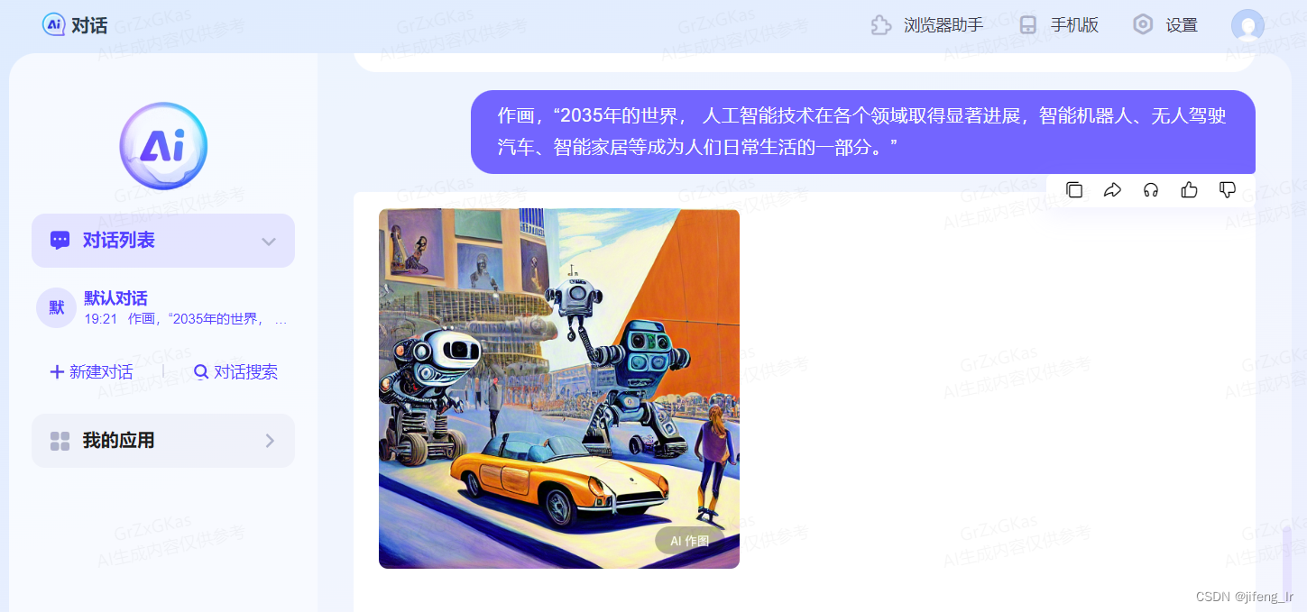作画,“2035年的世界, 人工智能技术在各个领域取得显著进展,智能机器人、无人驾驶汽车、智能家居等成为人们日常生活的一部分。”