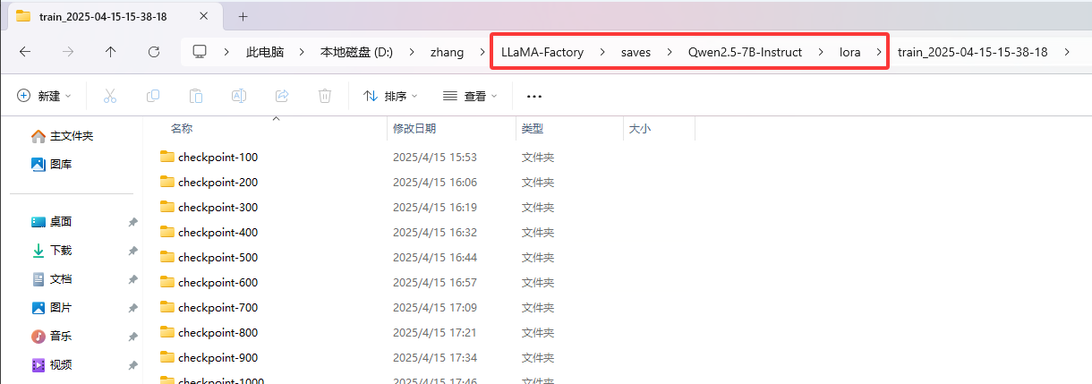 模型训练好后,会保存至 LLaMA-Factory 的 saves 文件夹中。