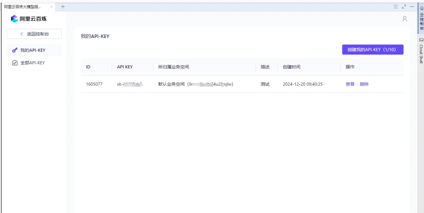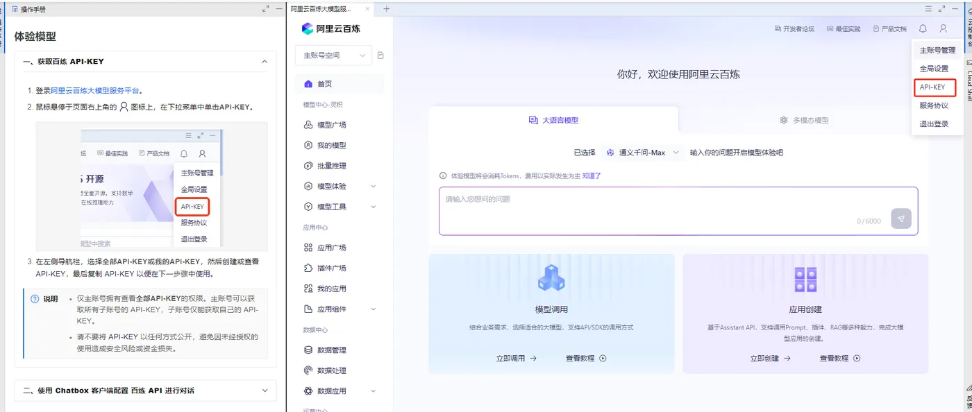 | API 密钥 | 填写模型服务调用 API 密钥。 | 填写 上一步骤获取的百炼 API-KEY |