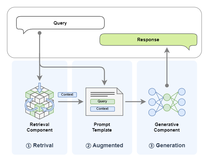 用户输入问题后,系统会基于该输入在外部知识库或向量数据库中检索相关内容。通常使用语义搜索(Semantic Search)或 BM25、Dense Retrieval(DPR)、Embedding-based Retrieval 等技术来匹配最相关的文档片段。