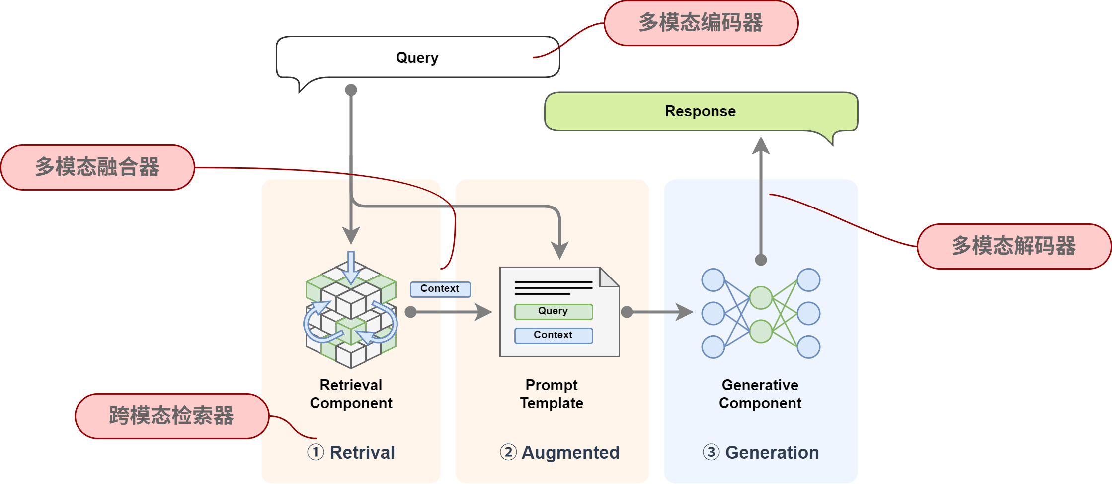 - 检索模块:从仅支持文本检索,到需要扩展为支持多模态检索,例如图像、音频等信息的索引和匹配。
