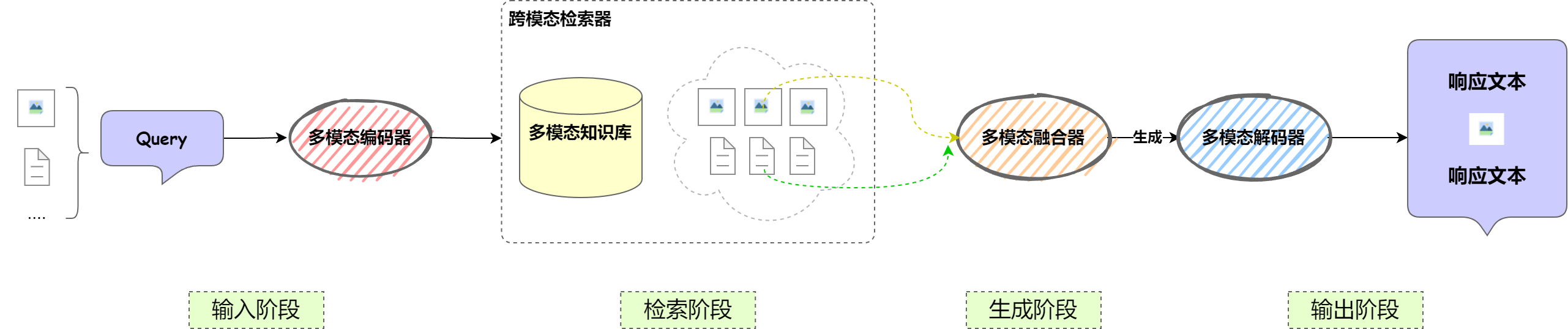 - 生成模块:基础 RAG 仅针对文本生成,现在需要扩展支持多模态输出,如文本结合图像、音频的生成能力。