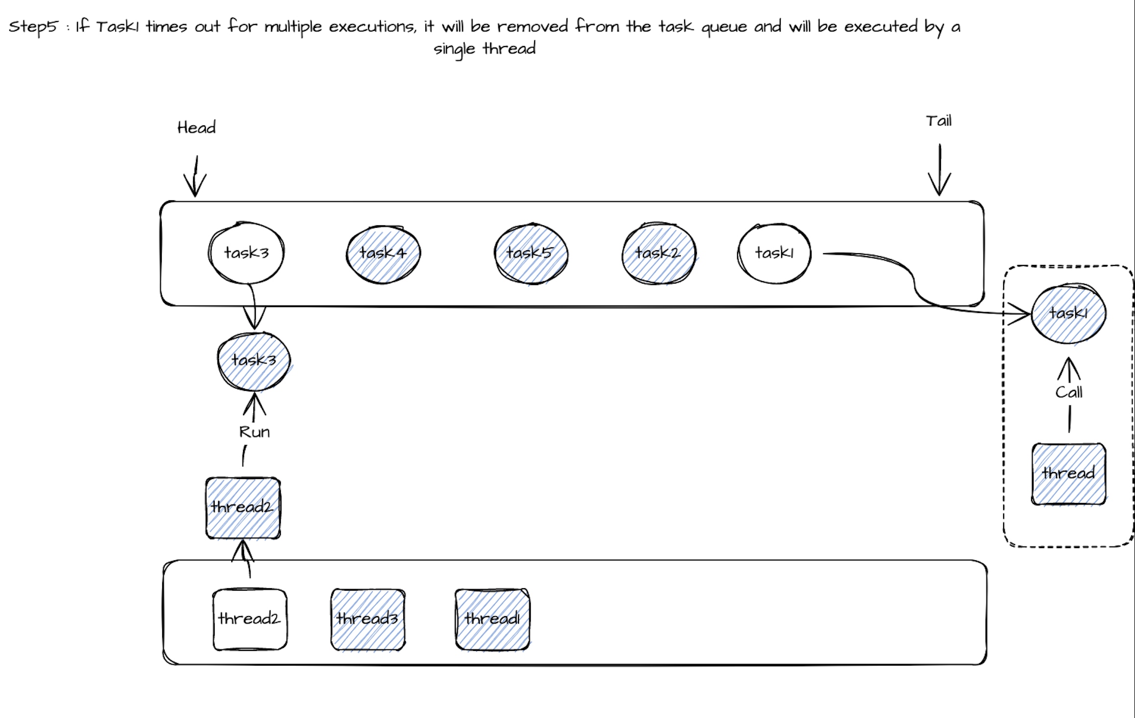 当 Task1 的 call() 执行完后,thread1 会被释放回线程池,同时记录 Task1 的一次 "超时" 行为。