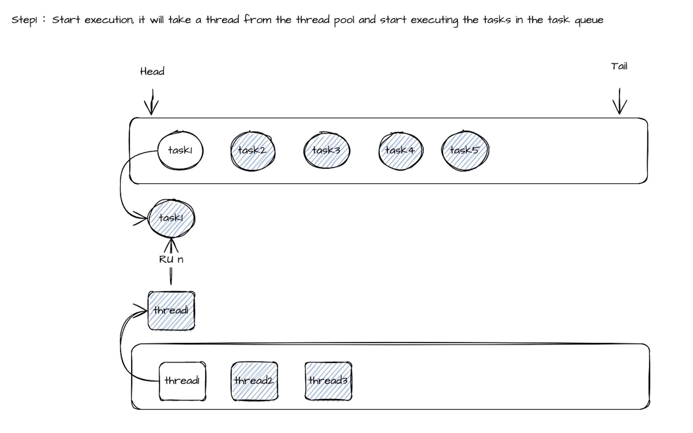 当线程 thread1 执行 Task1 的 call() 方法时,如果执行时间超过设定值(如 100ms),就从线程池中取出 thread2 来执行 Task2 的 call()。