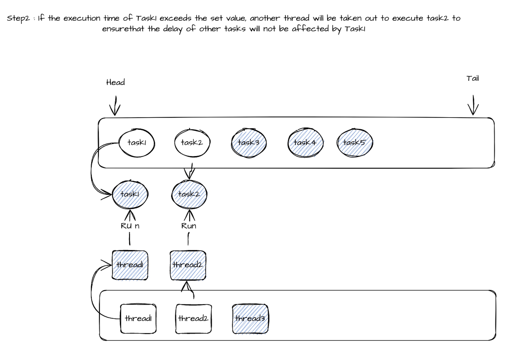 但这也会带来一个问题:如果某个任务的 call() 执行时间非常长,该线程会被这个任务长时间占用,从而导致其它共享该线程的任务延迟严重。