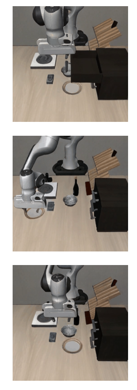 下图为 action model 的消融实验结果。对比 row2 和 row1 以及 row5 和 row4 可以看出,world model 的加入可以给 action model 带来更好的结果。Row3 可以看出,使用默认的 attention mask 会导致某些任务的成功率下降,但是从 row4 看出,我们提出的 attention mask 可以全面大幅提升任务的成功率。