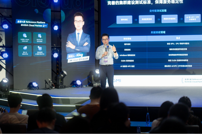 在本次大会上,GMI Cloud 集中展示了三大核心产品,为观众打造了沉浸式的 AI 基础设施交互体验。GMI Cloud 作为一朵“AI Native Cloud”,凭借全球布局的数据中心与 NVIDIA 的深度合作,提供基于 H200、B200 等高端芯片的 GPU 云服务,融合灵活公有云与定制化私有云,能为企业量身打造安全高效的 AI 基础设施。此外,Cluster Engine 作为 GMI Cloud 自主研发的云管理系统,通过优化资源调度,提供了灵活且稳定的集群管理解决方案,让算力资源调配更加敏捷高效。Inference Engine 则是 GMI Cloud 全栈自研的推理引擎云平台,依托芯片级算子优化与动态负载调度,实现了 AI 推理性能倍增和弹性伸缩,为 AI 业务爆发提供了坚实支撑。