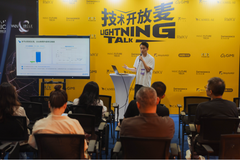 在专家分享方面,GMI Cloud 的技术实力与行业洞察得到充分展现。7 月 27 日下午,亚太区总裁 King Cui 在世博展览馆 H4 区域的 FUTURE TECH 舞台围绕 Inference Engine 展开深度分享,拆解其高并发、低延迟、动态扩缩容能力如何支撑全球 AI 业务爆发,解析了自研推理平台的架构设计、跨区域合规部署及软硬协同优化实践,揭秘了推理成本与效率指数级提升的关键路径。
