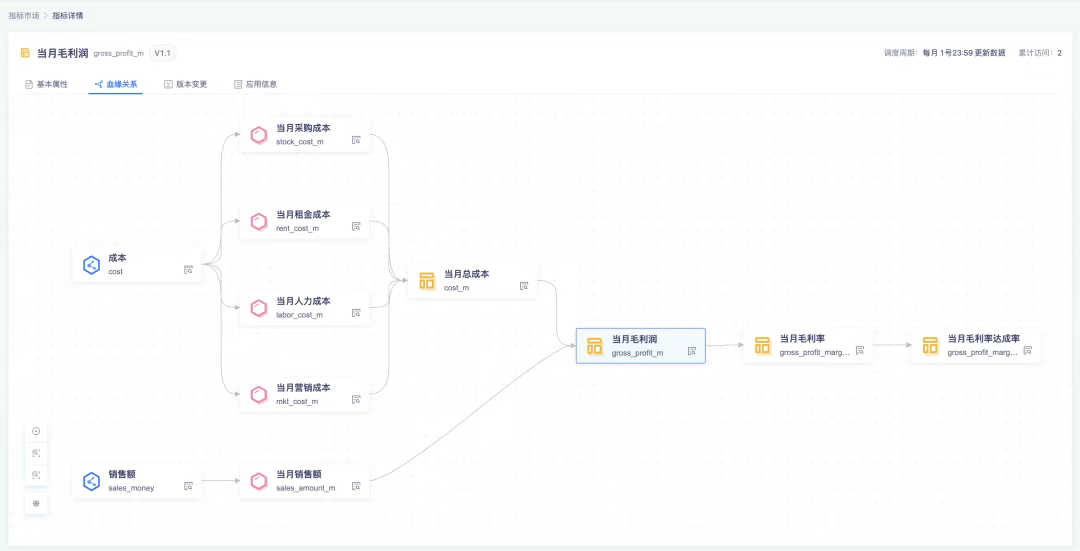 - 影响分析:基于指标血缘关系,在口径变更时快速识别影响范围,支持业务方协同沟通
