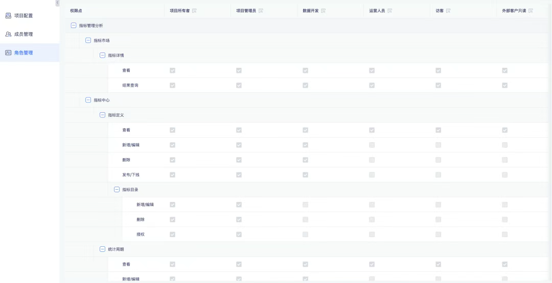 - 细粒度权限控制:包括指标权限、维度列权限、行级数据权限
