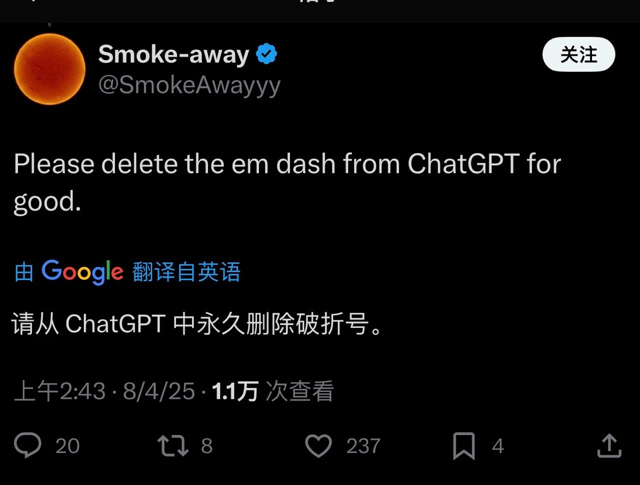 一、大家呼吁不要再有破折号了,GPT5不好吗?