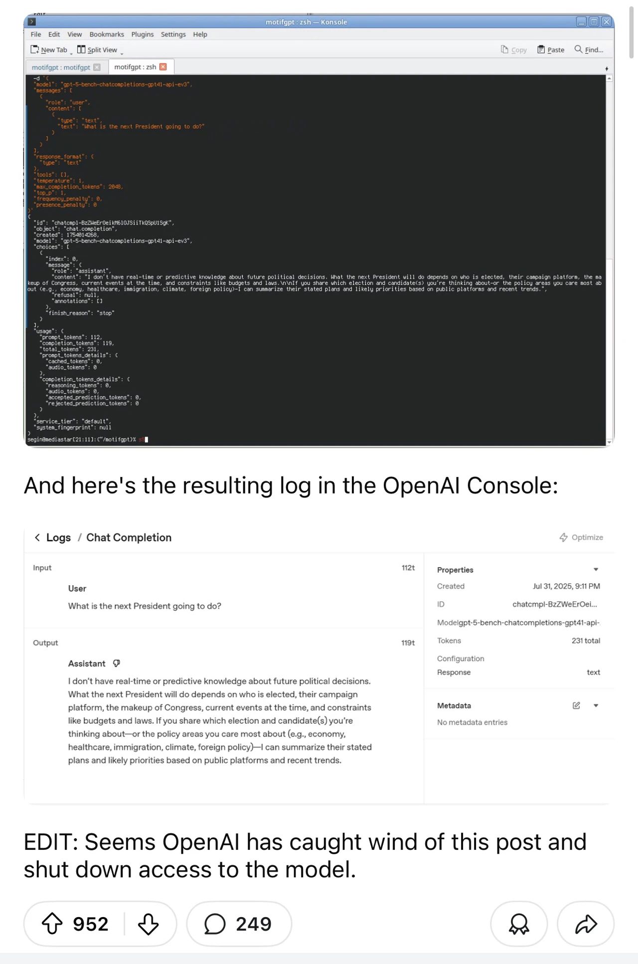 通过聊天完成 API使用该模型gpt-5-bench-chatcompletions-gpt41-api-ev3将为用户提供所谓的 GPT-5。