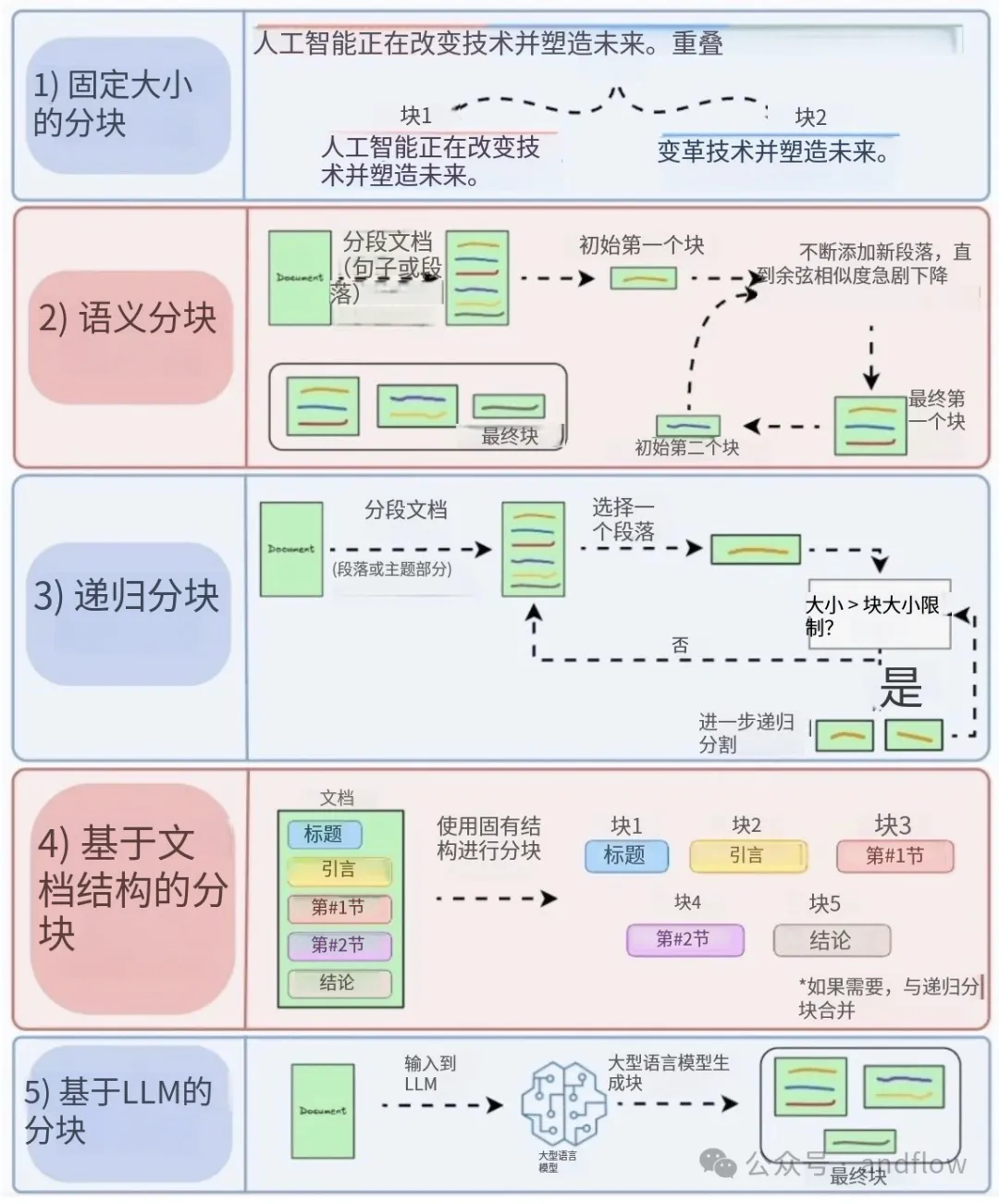 - 使用语言模型或句法树对文档进行语义切分,而非按字符或固定长度分块。