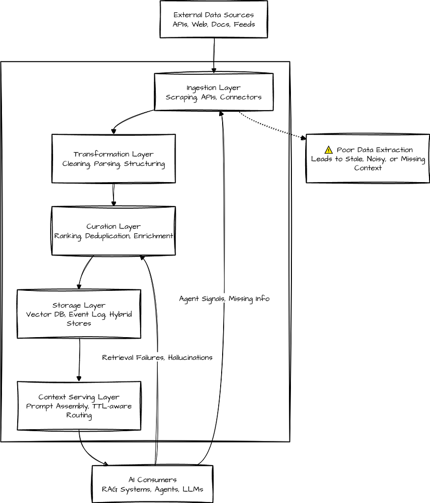 大多数团队在第一步就搞砸了:采集。糟糕的数据提取会毁掉上下文。如果你的采集层错过了关键更新,在边缘情况下默默地失败,或者以错误的结构或语言捕获信息,那么你的整个堆栈都会继承这种盲目性。