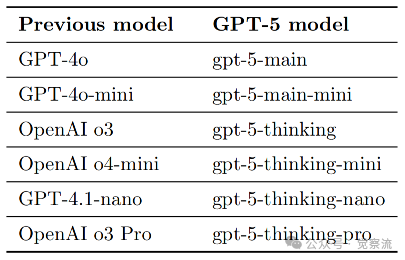 如上表所示,GPT-5模型系列可视为先前模型的演进: