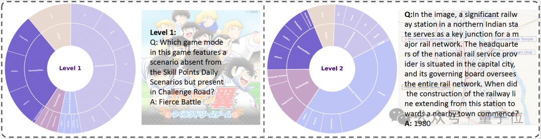 信息模糊化提升不确定性在生成问题时,研究团队刻意隐藏关键信息(如将“2019 年”替换为“21 世纪初”、将实体名改为描述性短语),并在视觉部分引入模糊指代词描述,使得模型无法依赖简单模式匹配,必须进行跨模态推理。