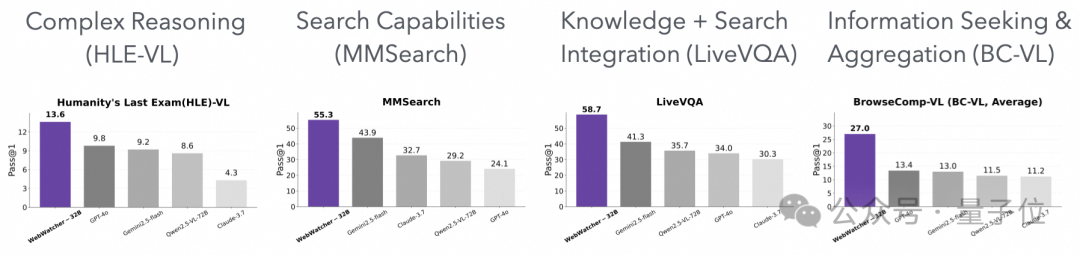 WebWatcher不仅在单一任务维度实现领先,更在复合型任务、跨模态复杂推理及真实信息检索等方面,奠定了新一代开源多模态Agent的领先地位。