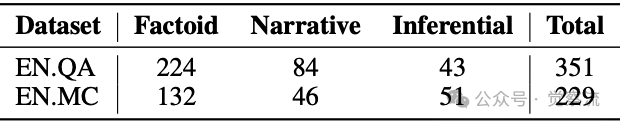 查询类型差异化表现:基于上表的详细数据(EN.QA: 224 factoid, 84 narrative, 43 inferential; EN.MC: 132 factoid, 46 narrative, 51 inferential),以下两图展示了按查询类型分类的性能分析: