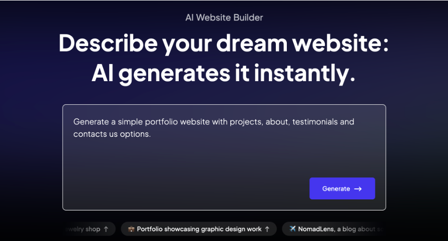 下面将对该工具开展测试,以评估其实际效能。首先,在主页上点击“生成 AI 网站”按钮。