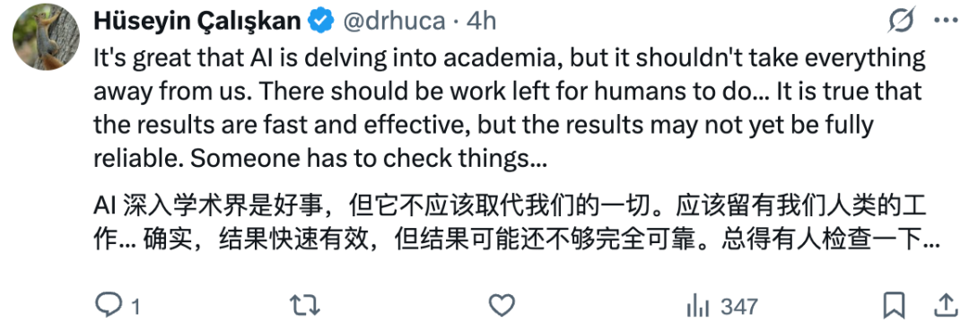 不过也有网友表达了 AI 深入科研领域的担忧: